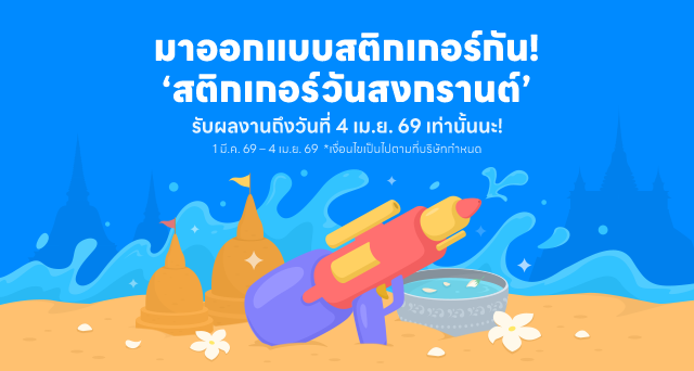 March 01, 2026 แนะนำไอเดียออกแบบ “สติกเกอร์สงกรานต์” LINE Creators Market ขอแจ้งให้ทราบว่าจะมีการจัดกิจกรรม "สติกเกอร์วันสงกรานต์" ในช่วง 1 เมษายน 2569 - 19 เมษายน 2569 เพื่อเป็นกิจกรรมพิเศษสติกเกอร์ข