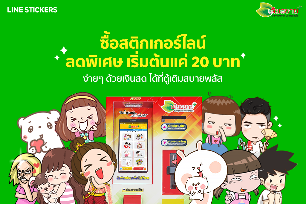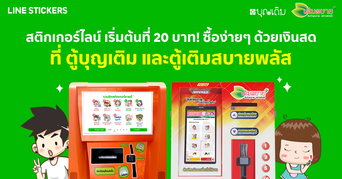 news April 09, 2018 ซื้อสติกเกอร์ครีเอเตอร์ง่ายๆ ด้วยเงินสด ผ่านตู้บุญเติม และเติมสบายพลัสได้แล้ว! ซื้อสติกเกอร์ไลน์ได้แล้ววันนี้ที่ตู้บุญเติม และตู้เติมสบายพลัส ราคาพิเศษเริ่มต้นเพียง 20 บาท!!! ไม่มีวันหมดอายุวิธีการซื้อสติกเกอร์